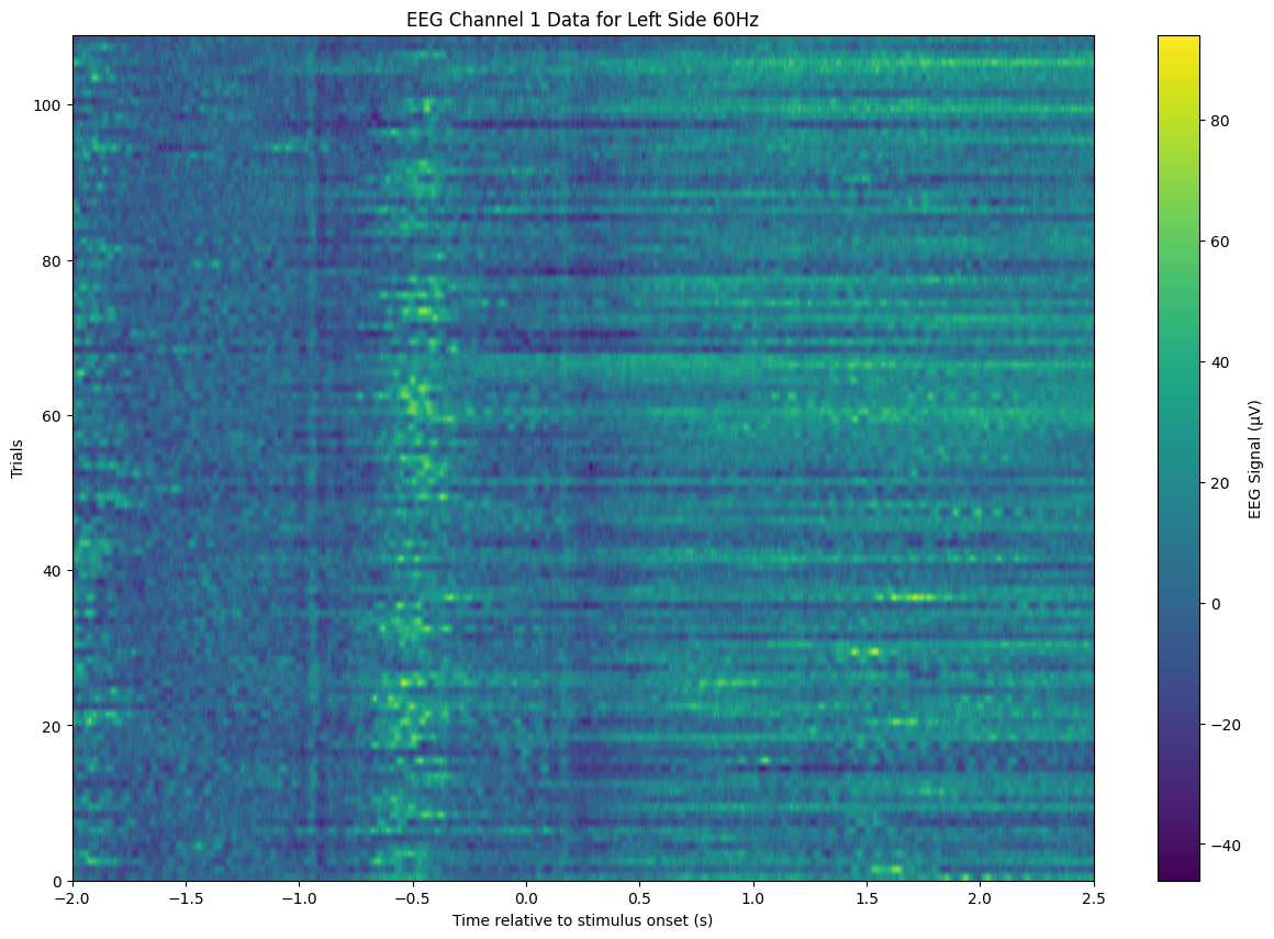 channel_data = eeg_data['left_side_60hz'][:, :, 0] # This selects all trials, all time points, for the first channel